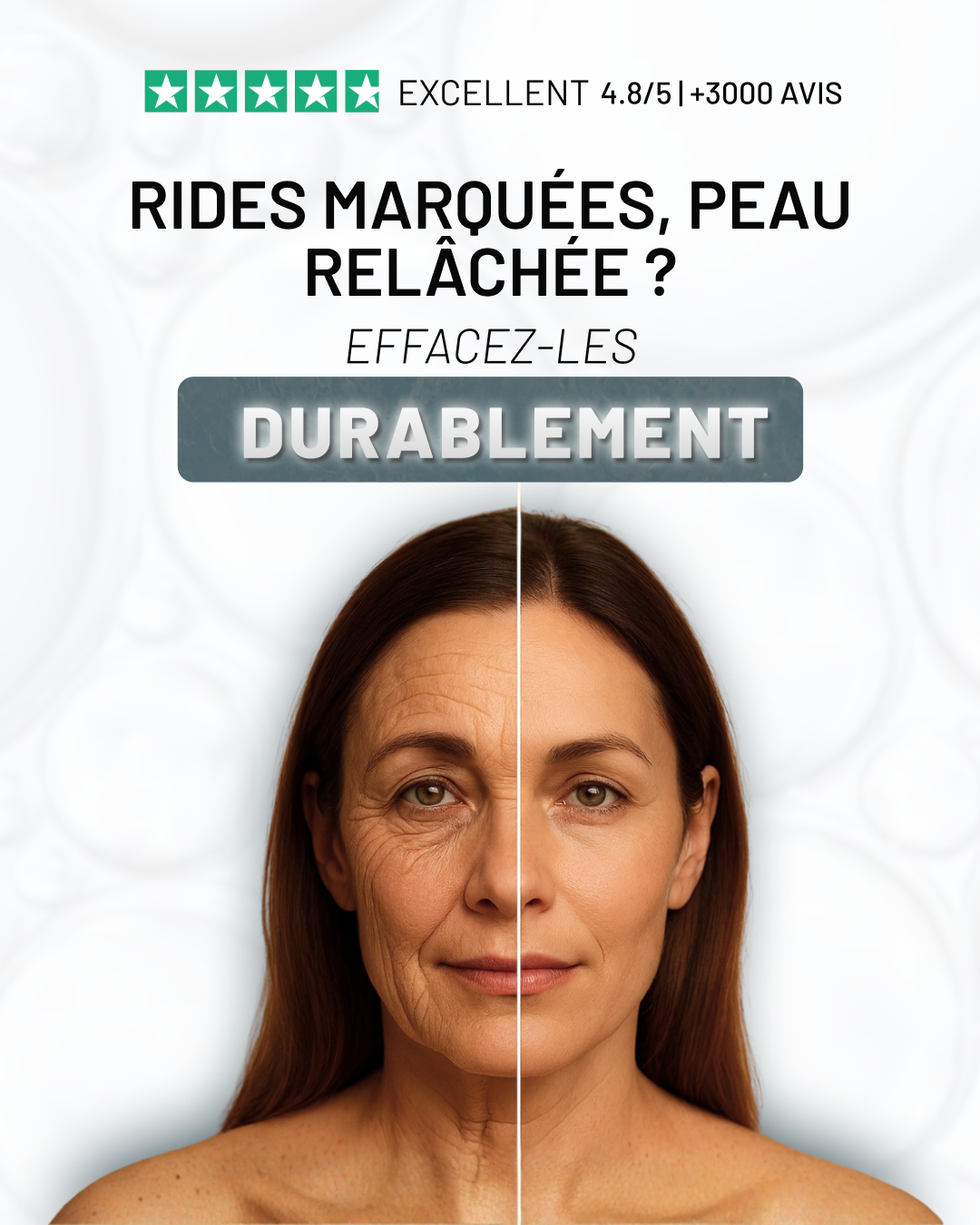 Cela signifie que vos rides, ridules et relâchement cutané seront visiblement réduits.