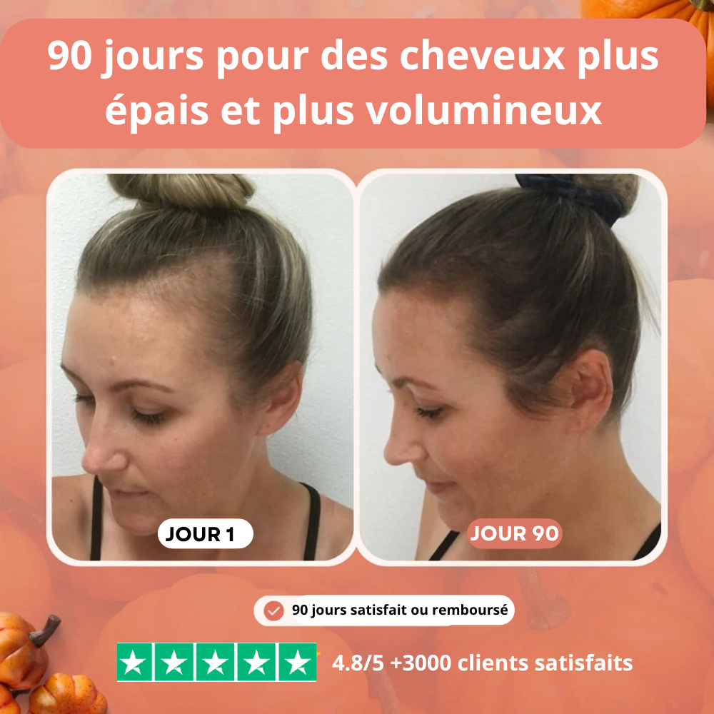 Récemment, plusieurs revendeurs douteux ont copié notre produit et vendent des gélules d’huile de pépins de courge diluées et de mauvaise qualité qui ne fonctionnent pas. Choisissez la formule authentique, pure et cliniquement prouvée — celle qui arrête réellement la chute des cheveux et stimule la repousse.